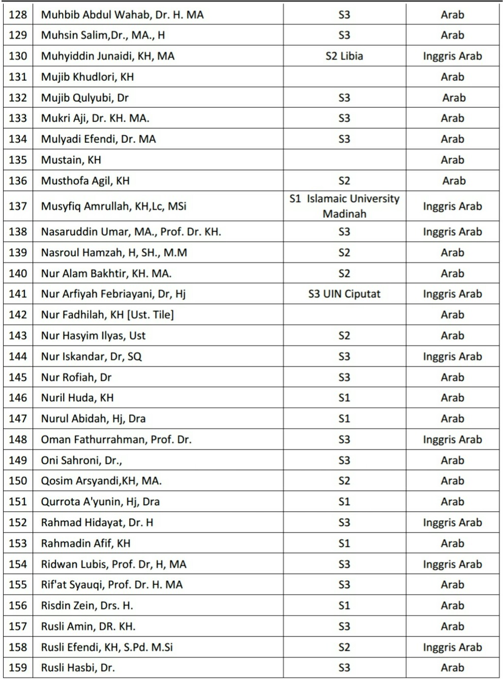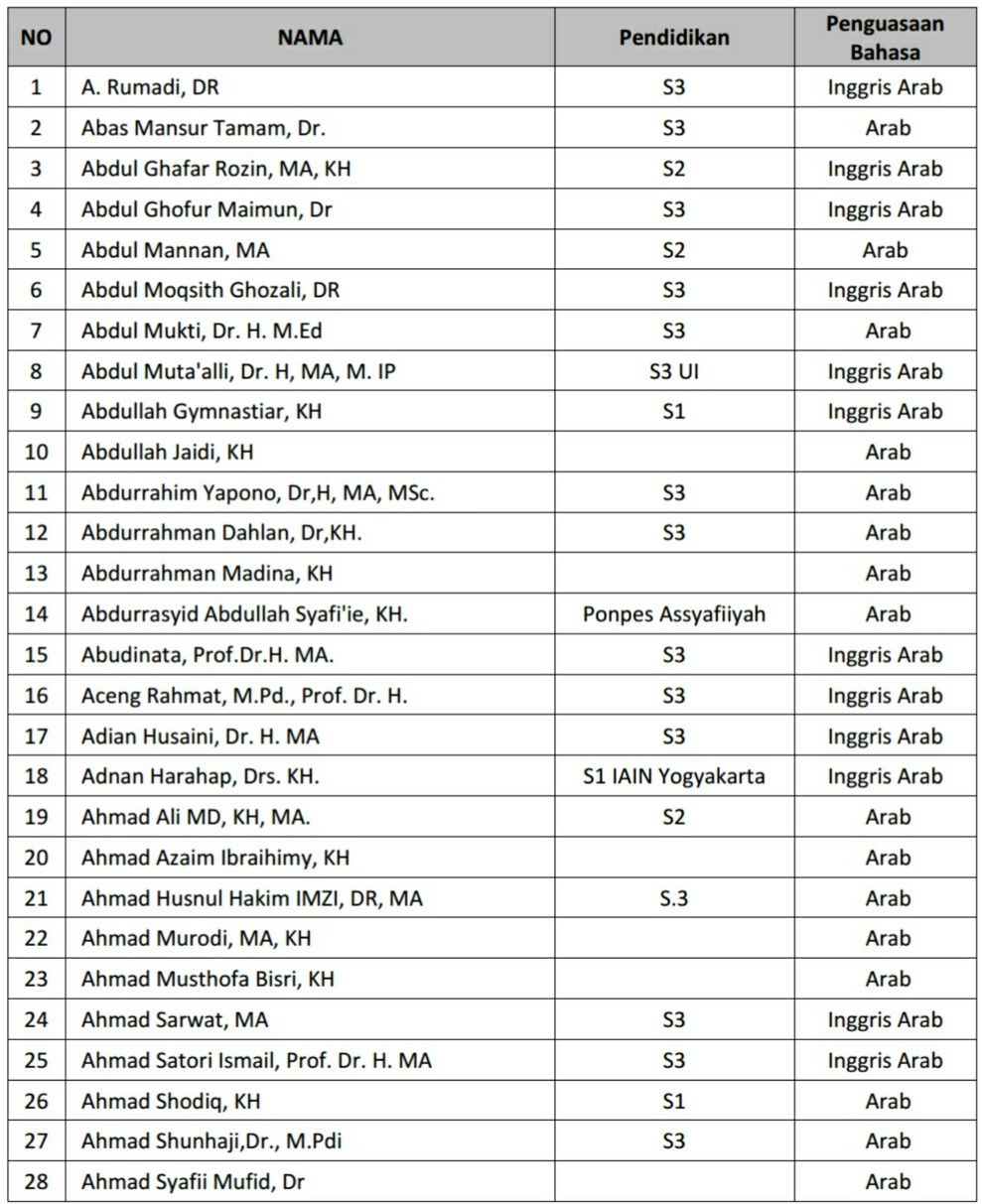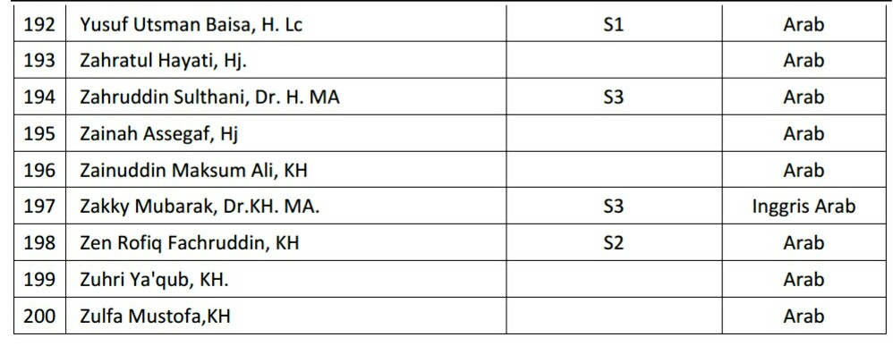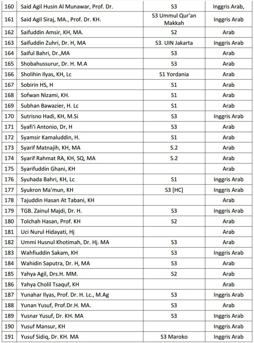 Berikut ini daftar 200 mubaligh yang dirilis oleh Kemenag RI.