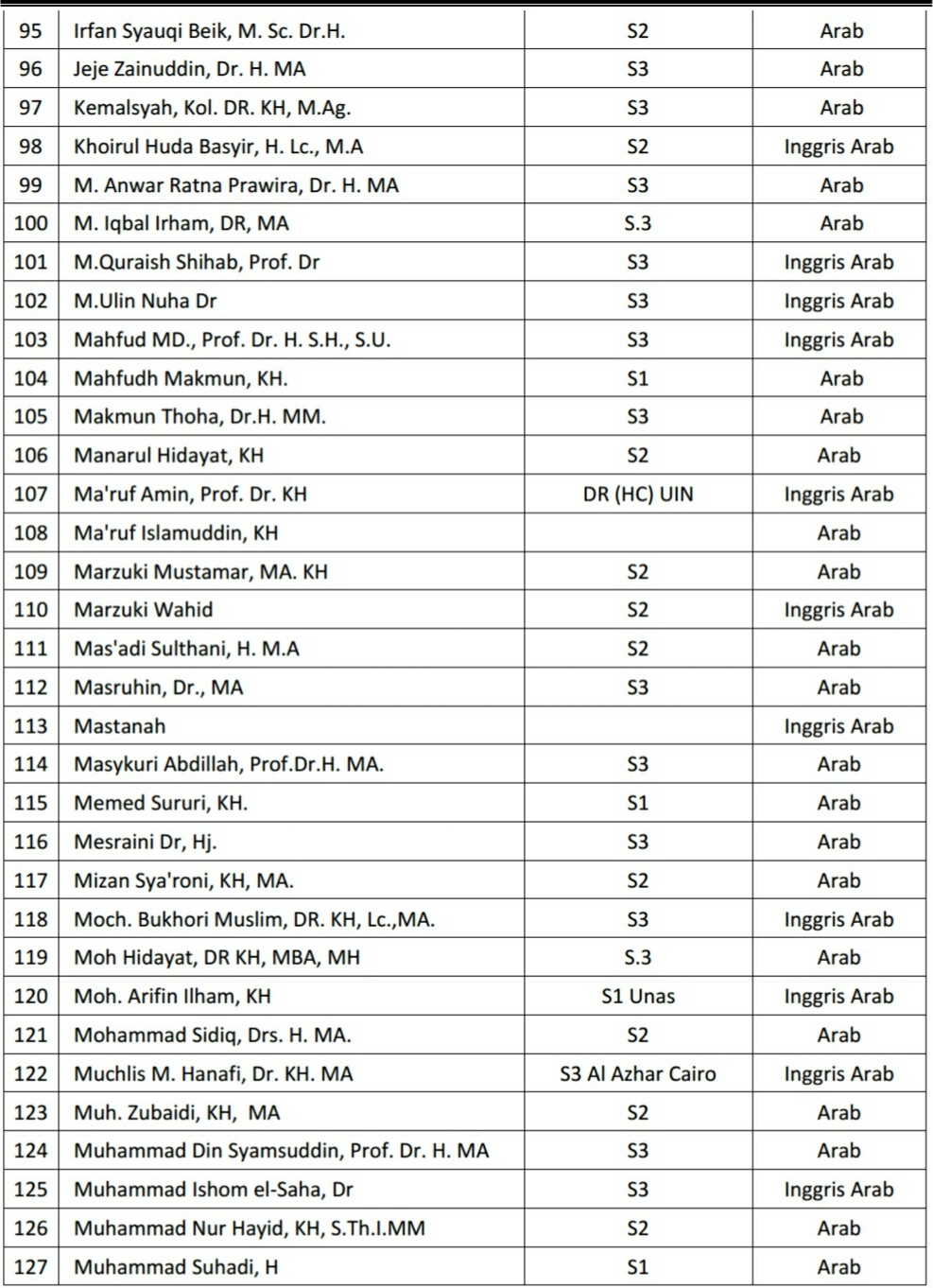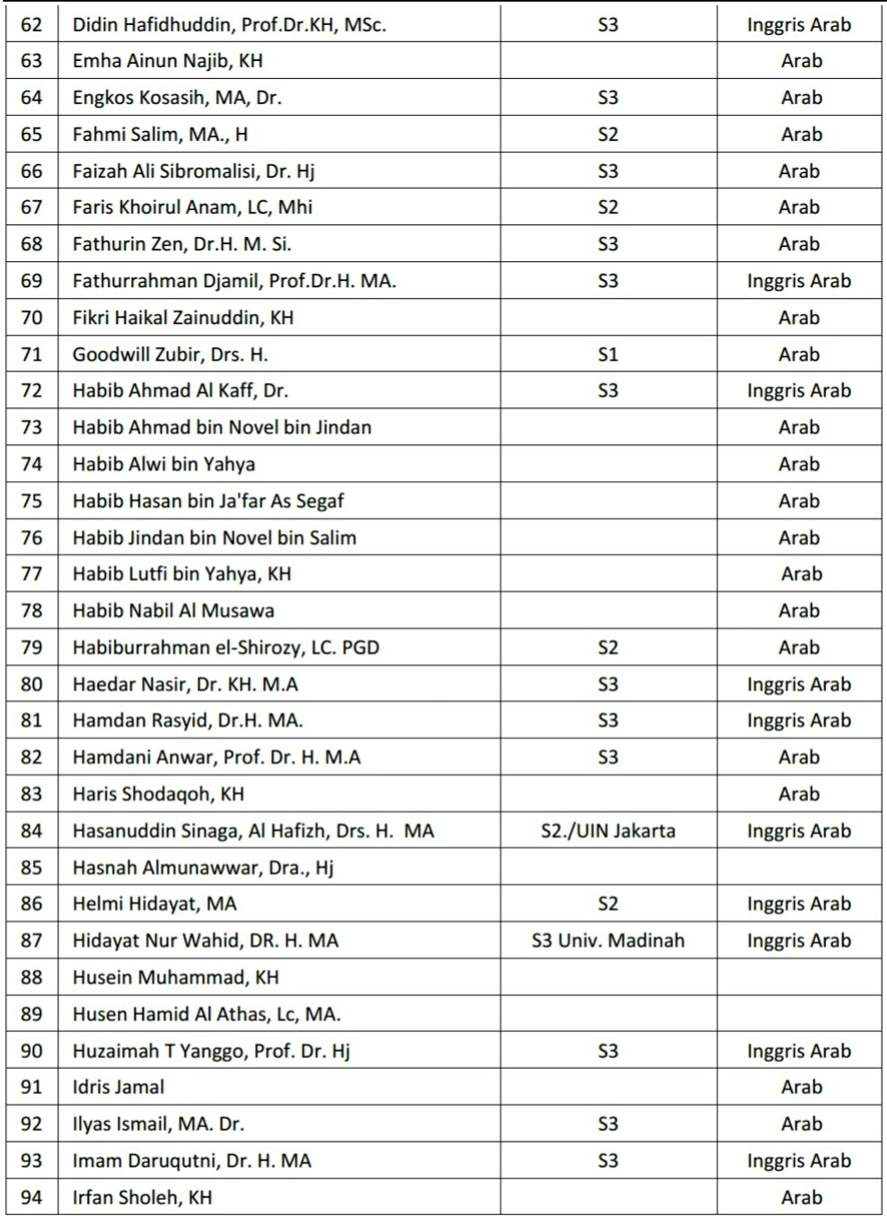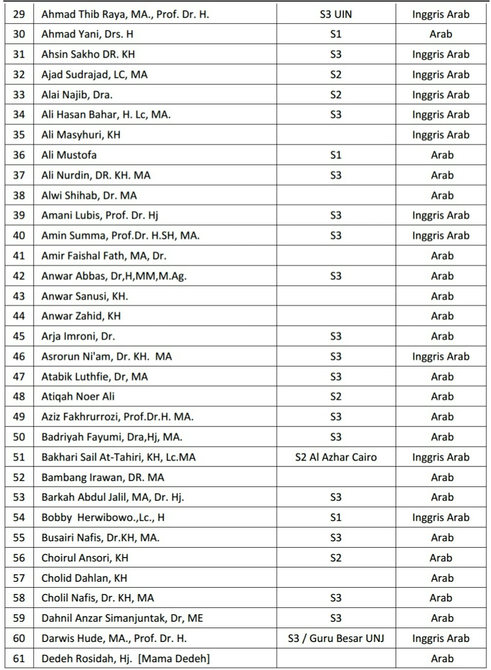 Berikut ini daftar 200 mubaligh yang dirilis oleh Kemenag RI.